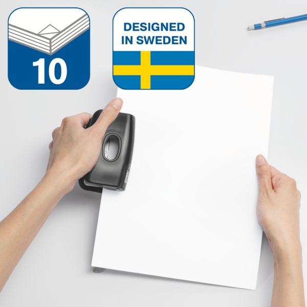 Dette hulapparat kombinerer robust styrke med praktisk design, perfekt til både hjemmet og skolebrug. Med evnen til at lave huller i op til 10 ark (80 g) ad gangen, leverer det pålidelig ydeevne med et handy og bærbart design.