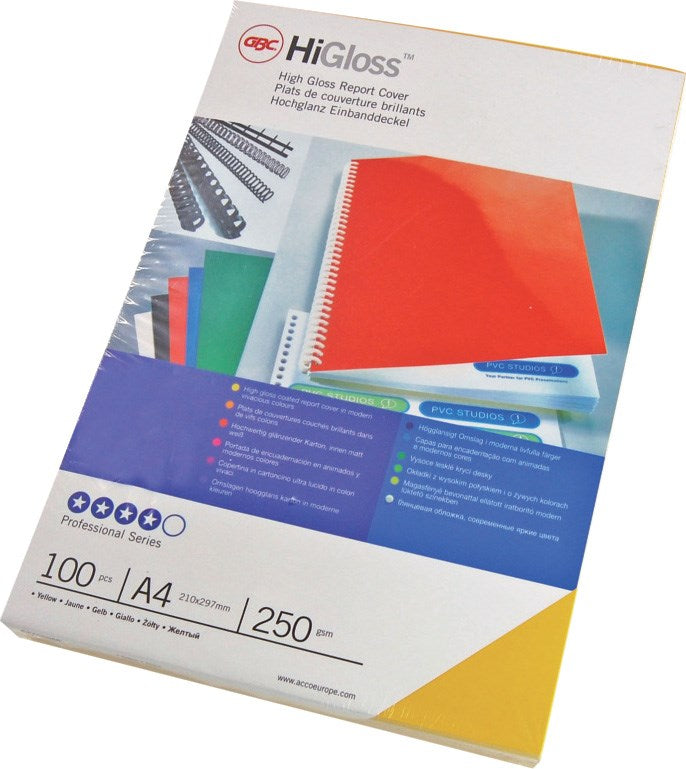 Indbinding bliver ikke nemmere! HiGloss indbindingsomslag er en serie enkeltsidede omslag. Med overfladebehandling, der giver en meget reflekterende og flot overflade, og som bringer dine præsentationer ekstra til live. De klare farver gør omslagene til populære valg indenfor uddannelsesinstitutioner og mediefirmaer, der ønsker kreativet udtryk. Farve: Hvid. 250 g. A4 format. Pakkestørrelse: 100. - Farverig: HiGloss™ omslag er ideelle til dokumenter, der vil skille sig ud fra mængden - Stærk: Lavet af holdbar 250 g karton med en yderside i højreflekterende HiGloss™ finish og inderside i mat hvid. Giver et klart, moderne look til dokumenter, samtidigt med at de beskytter dokumenterne mod beskadigelse
