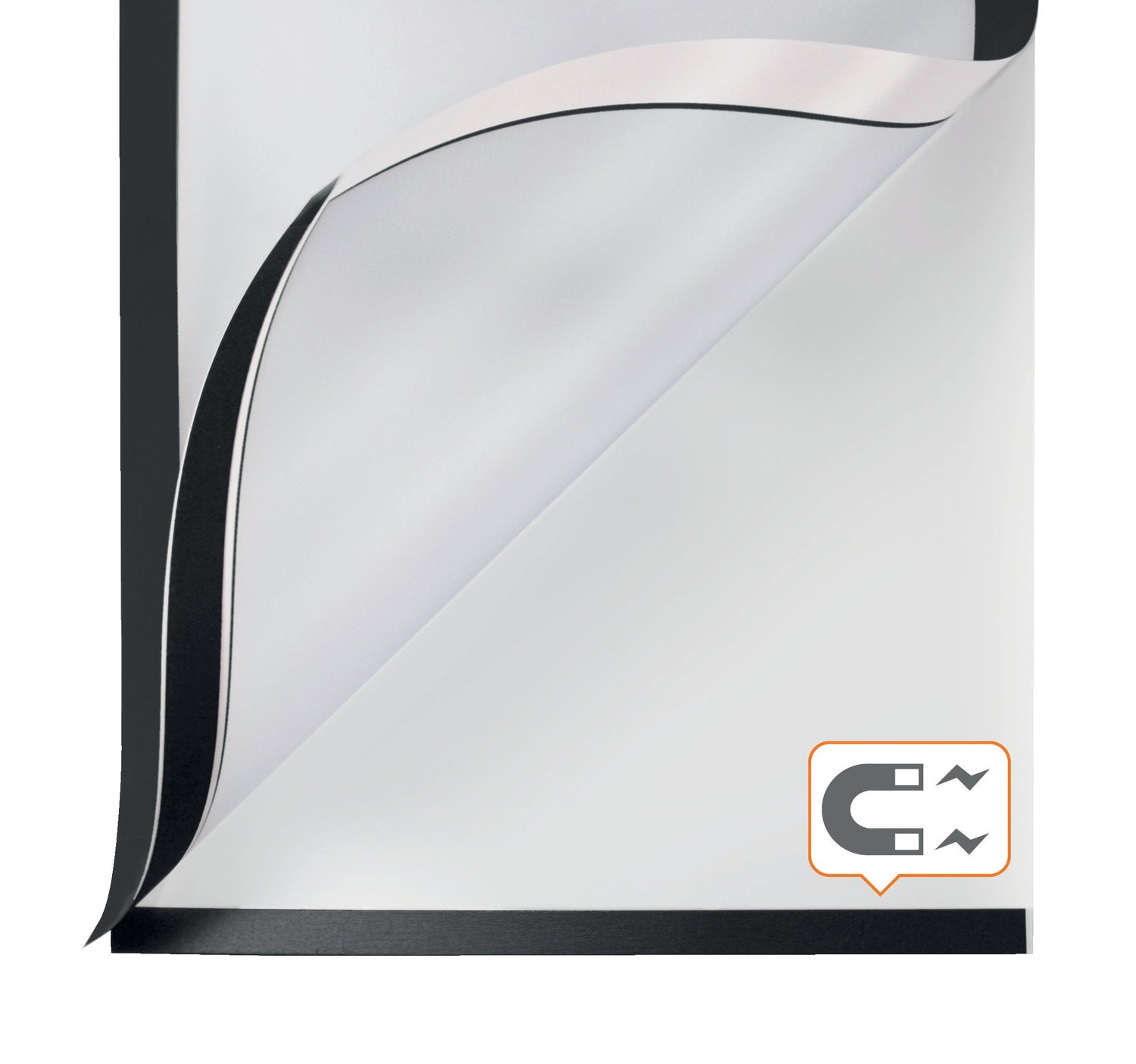 Inforammen har et gennemsigtigt, mat omslag, som beskytter indholdet og kan tørres af.