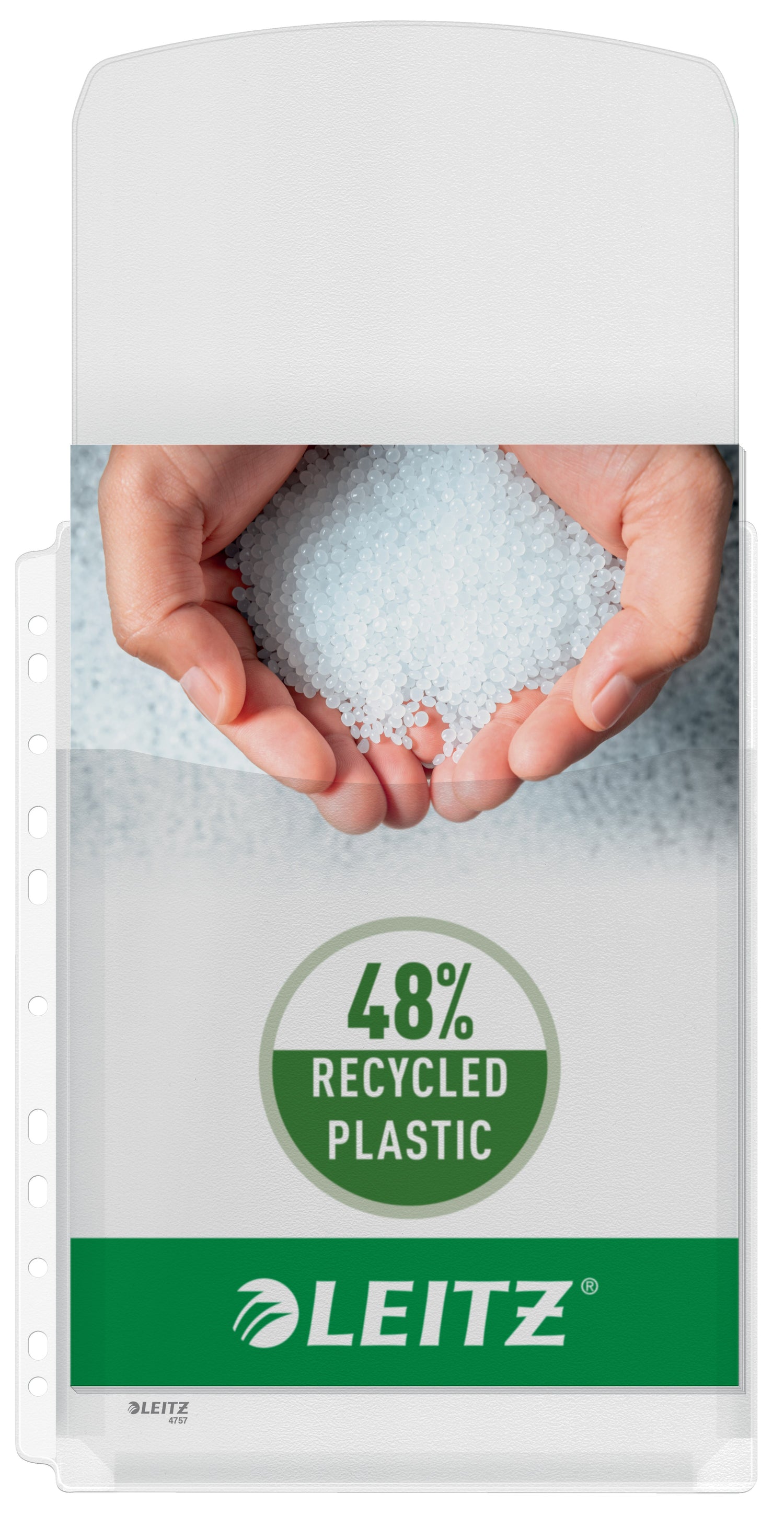 Lommen er lavet af PVC plast med 48 % præ-consumer recirkuleret indhold og er syrefri.