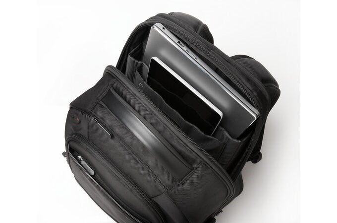 Comfortable, secure, stylish, durable and TSA checkpoint friendly, the ergonomist-approved Contour 2.0 Pro Laptop Backpack – 17" is the perfect 17" laptop backpack for mobile professionals. The Contour 2.0 Pro Laptop Backpack – 17" features a heat-dissipating contoured back that hugs the body and shifts weight so it is closer to the centre of gravity*; specially positioned pockets that help evenly distribute weight and balance contents; a laptop security compartment with a puncture-resistant, lockable zip; tough, water-resistant material; and interior padding for an added layer of protection. *While properly wearing both straps. Ergonomist-approved design features a heat-dissipating back that hugs the body and shifts weight so it is closer to the centre of gravity*, while specially positioned pockets help evenly distribute weight and balance contents. *While properly wearing both straps. Padded carry handle adds another comfortable option to how it can be carried. Lapt