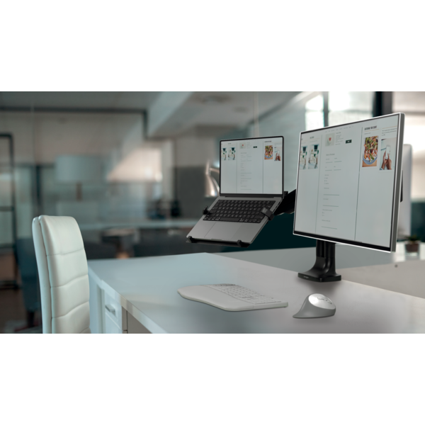Kensingtons universelle laptop holder til monitor arme er den ideelle løsning til at maksimere din arbejdsplads. Denne stabile og sikre platform monteres nemt på enhver monitor arm med en VESA® 75/100-plade og hæver din bærbare computer til øjenhøjde.