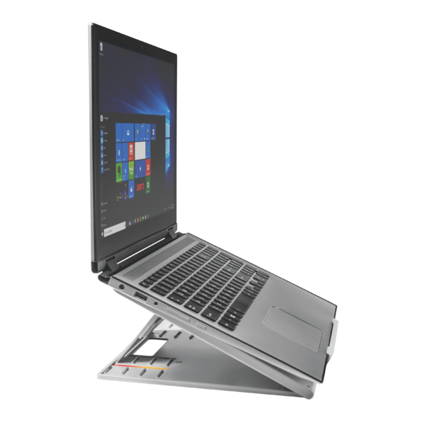 Kombiner ergonomiske fordele med teknologisk hjælp fra Kensington® SmartFit® Easy Rise™ Go. Justerbar ergonomisk laptop riser og kølestand (grå). Det slanke 2-i-1-design kan justeres i højde og vinkel for at forbedre kropsholdning, øjenjustering og nakke- og skulderkomfort, samtidig med at den bærbare computers interne komponenter er kølige. Skridsikre fodpuder forhindrer stativet i at glide fremad, polstrede indsatser giver en sikker pasform til din enhed, og det slanke foldbare design er lavet til rejser. Brug med et eksternt tastatur og en mus (sælges separat). Understøtter 17” standard- og gaming-bærbare computere.