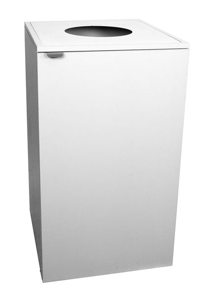 Kildesorteringsskab DIANA med metalplade. Til 125L sækkestativ for enkel håndtering af tømning. Skabet har en robust metalbase med justerbare fødder. Det er også muligt at sætte hjul på skabet hvis du vil gøre det lettere for rengøringsteamet.