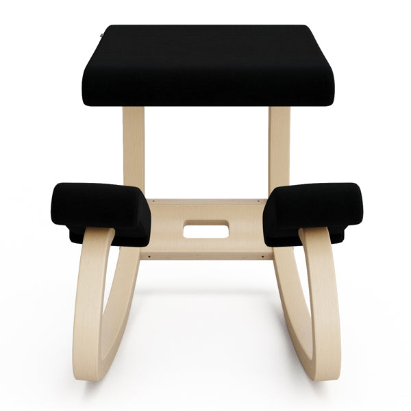 - Til skrivebordsarbejde giver den knælende, åbne siddestilling bevægelsesfrihed og hjælper dig med at holde en oprejst holdning. - De polstrede puder til skinnebenene aflaster tryk og fordeler vægten, mens de buede meder gør det let at skifte stilling og holde kroppen aktiv. - REV 194-betrækket i sort er slidstærkt og åndbart, og stellet i naturtræ er let at flytte mellem arbejdspladser.