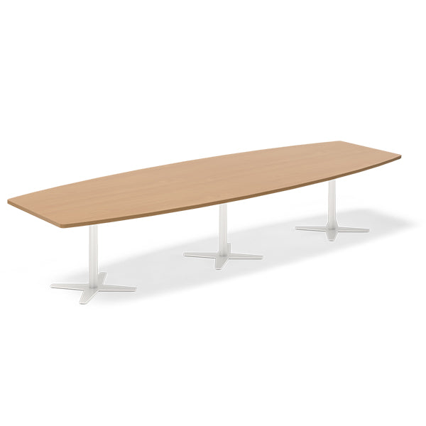 Konferencebord DNA, Bøg 3800x1200 mm bådformet, Hvid understel