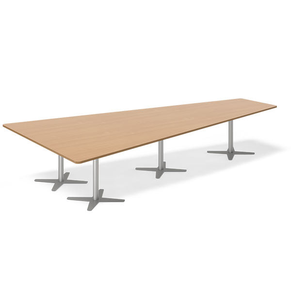 Konferencebord DNA, Bøg 3800x1990 mm trapezformet, Alugrå understel