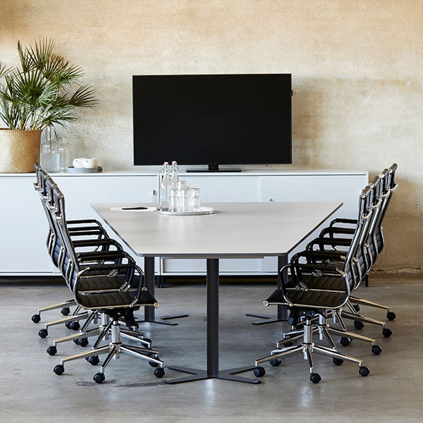 Konferencebord DNA, Hvid 4400x2175 mm trapezformet, Alugrå understel