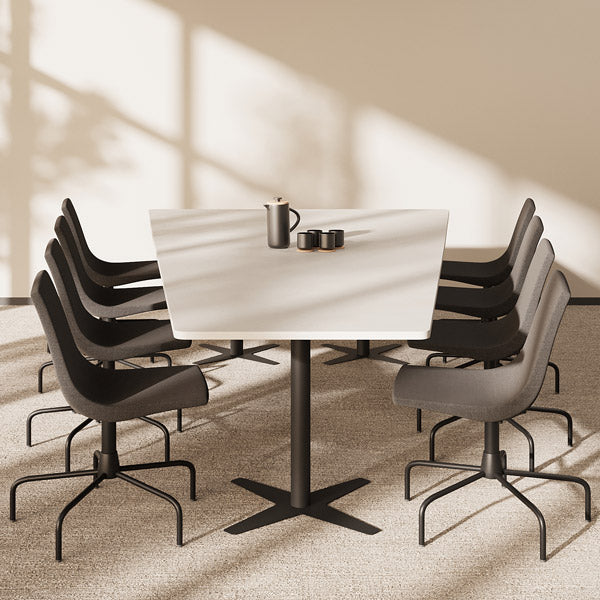 Bordet leveres med et solidt sort understel, som kan tilpasses i farve efter ønsket helhed med konferencestolene.
