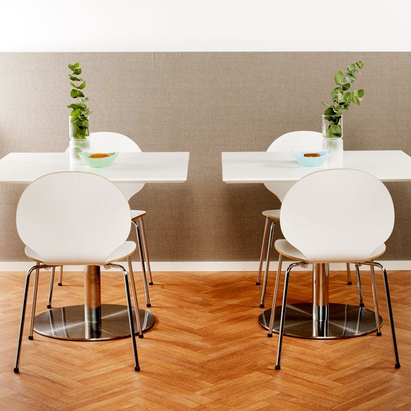 Stoltol Vl i Café-serien er en moderne og stabelbar spisestol i et internationalt design, der er inspireret af anerkendte, danske klassikere. Stolen leveres i hvid med forkromet understel. Andre farver kan også leveres.