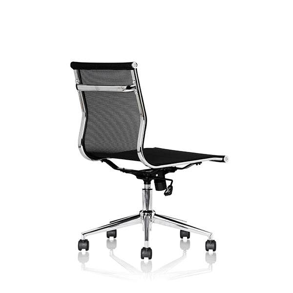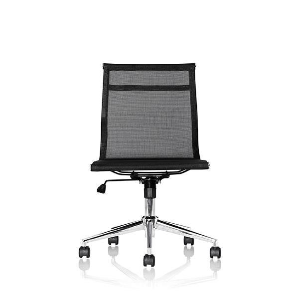 Konferencestol Zare har en lav ryg og leveres uden armlæn. Stolen leveres med solid net mesh i ryg og sæde og har justerbar siddehøjde.For at undgå nakkeslitage ved orientering mod skærm eller lærred i mødelokalet, har Zare-stolen drejeligt understel.