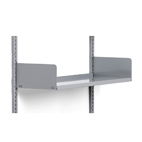 Konsol, over for fastgørelse af stålhylde. Passer til L- eller T-fod samt vægskinner. Vælg højre- og venstrekonsol, afhængig af hyldedybde.