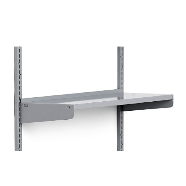 Konsol, under for fastgørelse af stålhylde. Passer til L- eller T-fod samt vægskinner. Vælg højre- og venstrekonsol, afhængig af hyldedybde.