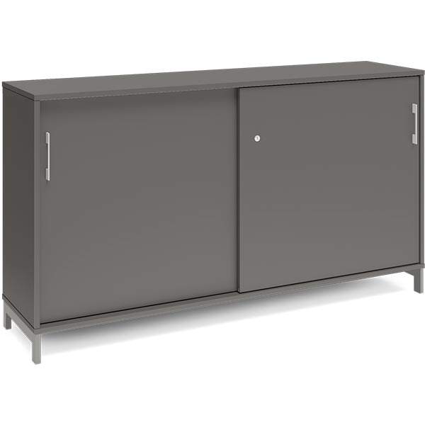 2A4 kontorskab i kontormøbelserien DNA, med 2A4 skydedør, udvendig bredde x dybde x højde, 1600 x 400 x 890 mm, inkl. understel. Dette kontorskab leveres med antracit laminat kabinet i kombination med antracit laminat døre og på et flot alugråt understel, miljørigtig pulverlakeret.Specifikationer: