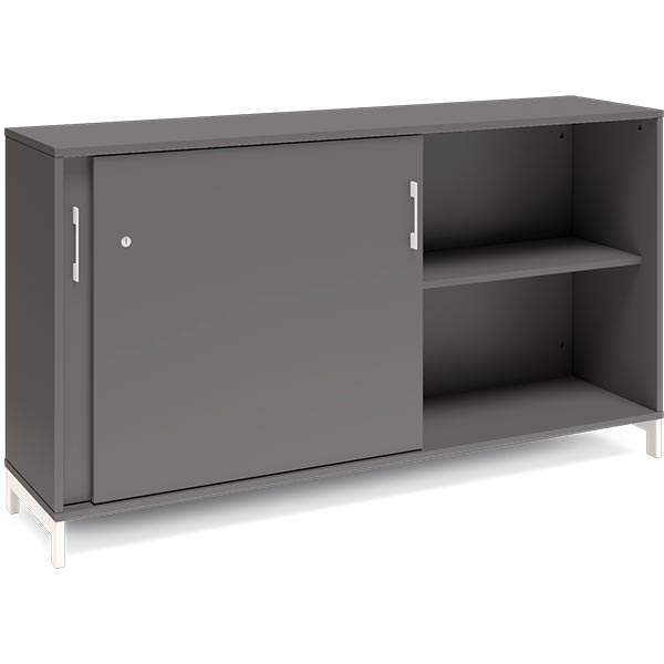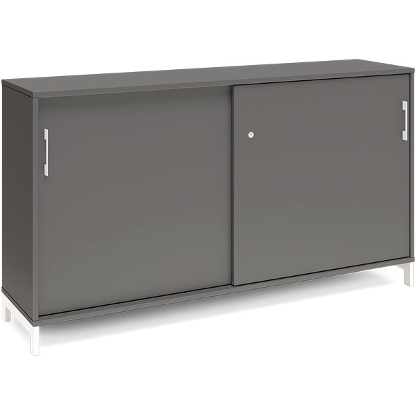 2A4 kontorskab i kontormøbelserien DNA, med 2A4 skydedør, udvendig bredde x dybde x højde, 1600 x 400 x 890 mm, inkl. understel. Dette kontorskab leveres med antracit laminat kabinet i kombination med antracit laminat døre og på et flot hvidt understel, miljørigtig pulverlakeret.Specifikationer: