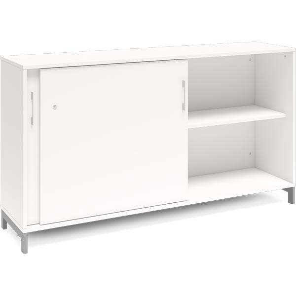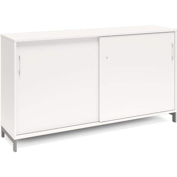 2A4 kontorskab i kontormøbelserien DNA, med 2A4 skydedør, udvendig bredde x dybde x højde, 1600 x 400 x 890 mm, inkl. understel. Dette kontorskab leveres med hvidt laminat kabinet i kombination med hvide laminat døre og på et flot alugråt understel, miljørigtig pulverlakeret.Specifikationer: