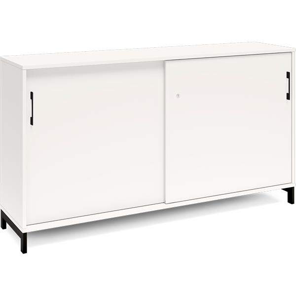 2A4 kontorskab i kontormøbelserien DNA, med 2A4 skydedør, udvendig bredde x dybde x højde, 1600 x 400 x 890 mm, inkl. understel. Dette kontorskab leveres med hvidt laminat kabinet i kombination med hvide laminat døre og på et flot sort understel, miljørigtig pulverlakeret.Specifikationer: