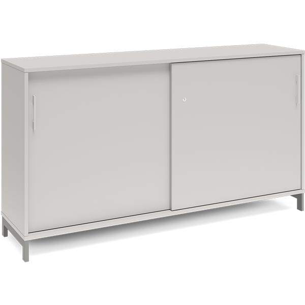 2A4 kontorskab i kontormøbelserien DNA, med 2A4 skydedør, udvendig bredde x dybde x højde, 1600 x 400 x 890 mm, inkl. understel. Dette kontorskab leveres med lys grå laminat kabinet i kombination med lys grå laminat døre og på et flot alugråt understel, miljørigtig pulverlakeret.Specifikationer: