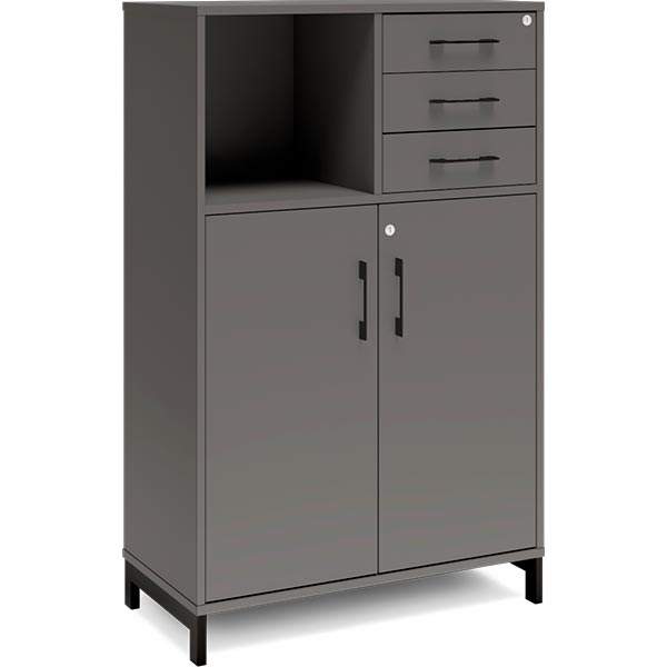 Kontorskab DNA, 800x1275 mm, Antracit/Sort, skuffemodul 3A4/2A4