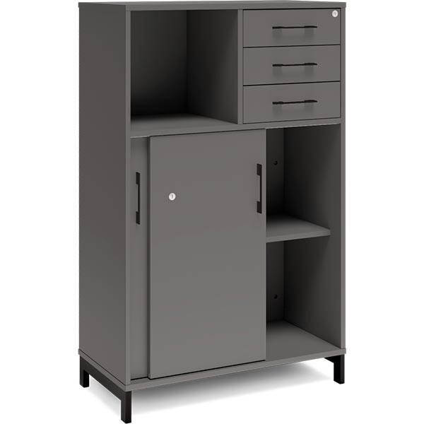 Kontorskab DNA, 800x1275 mm, Antracit/Sort, skydedør og skuffemodul 3A4/2A4