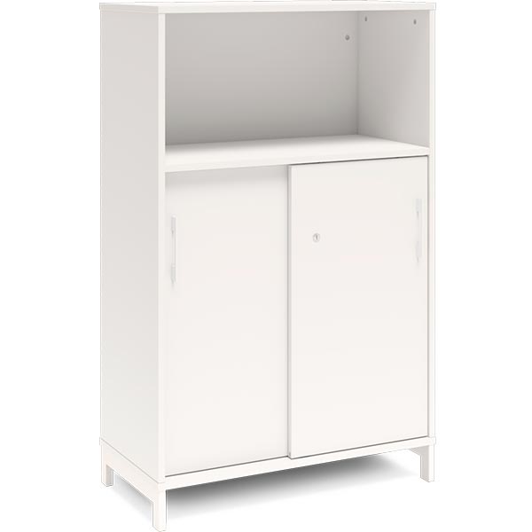 3A4 kontorskab i kontormøbelserien DNA, med 2A4 skydedør, udvendig bredde x dybde x højde, 800 x 400 x 1275 mm, inkl. understel. Dette kontorskab leveres med hvidt laminat kabinet i kombination med hvide laminat døre og på et flot hvidt understel, miljørigtig pulverlakeret.Specifikationer: