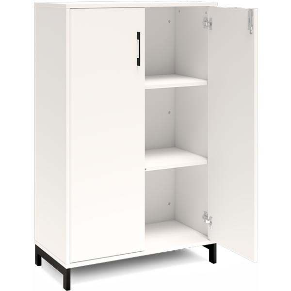 3A4 kontorskab i kontormøbelserien DNA, med 3A4 dør, udvendig bredde x dybde x højde, 800 x 400 x 1275 mm, inkl. understel. Dette kontorskab leveres med hvidt laminat kabinet i kombination med hvide laminat døre og på et flot sort understel, miljørigtig pulverlakeret.Specifikationer: