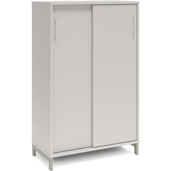 3A4 kontorskab i kontormøbelserien DNA, med 3A4 skydedør, udvendig bredde x dybde x højde, 800 x 400 x 1275 mm, inkl. understel. Dette kontorskab leveres med lys grå laminat kabinet i kombination med lys grå laminat døre og på et flot alugråt understel, miljørigtig pulverlakeret.Specifikationer: