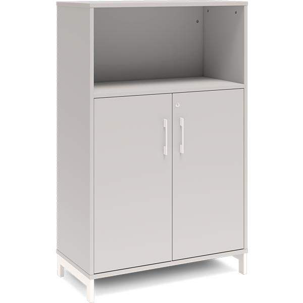 3A4 kontorskab i kontormøbelserien DNA, med 2A4 dør, udvendig bredde x dybde x højde, 800 x 400 x 1275 mm, inkl. understel. Dette kontorskab leveres med lys grå laminat kabinet i kombination med lys grå laminat døre og på et flot hvidt understel, miljørigtig pulverlakeret.Specifikationer: