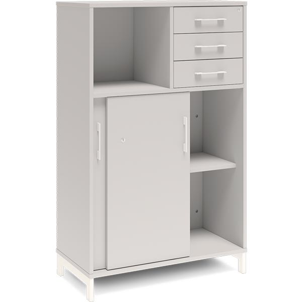 Kontorskab DNA, 800x1275 mm, Lys grå/Hvid, skydedør og skuffemodul 3A4/2A4