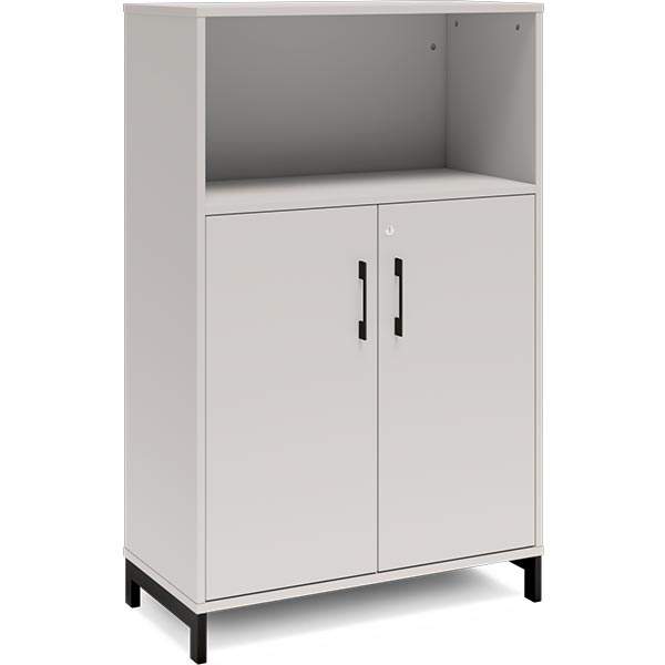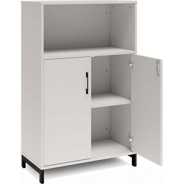 3A4 kontorskab i kontormøbelserien DNA, med 2A4 dør, udvendig bredde x dybde x højde, 800 x 400 x 1275 mm, inkl. understel. Dette kontorskab leveres med lys grå laminat kabinet i kombination med lys grå laminat døre og på et flot sort understel, miljørigtig pulverlakeret.Specifikationer: