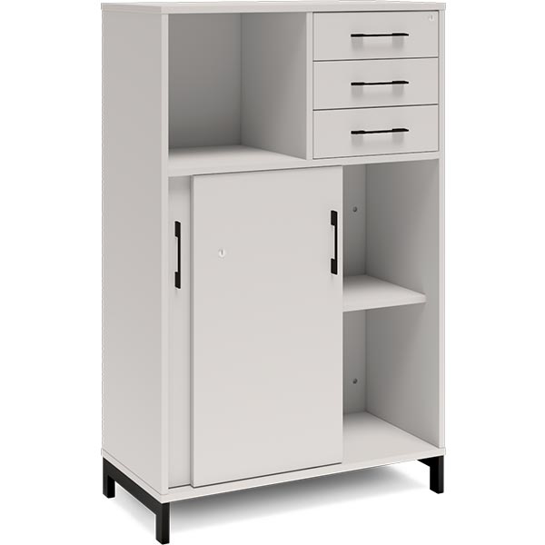 Kontorskab DNA, 800x1275 mm, Lys grå/Sort, skydedør og skuffemodul 3A4/2A4