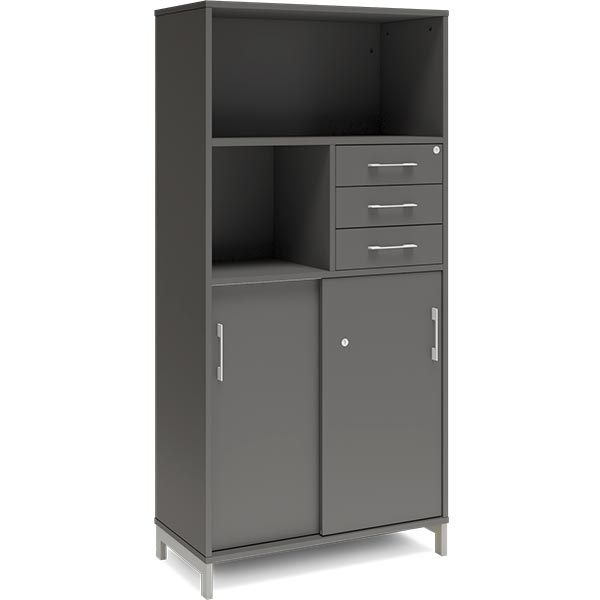Kontorskab DNA, 800x1660 mm, Antracit/Alugrå, skydedør og skuffemodul 4A4/2A4