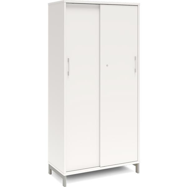 4A4 kontorskab i kontormøbelserien DNA, med 4A4 skydedør, udvendig bredde x dybde x højde, 800 x 400 x 1660 mm, inkl. understel. Dette kontorskab leveres med hvidt laminat kabinet i kombination med hvide laminat døre og på et flot alugråt understel, miljørigtig pulverlakeret.Specifikationer: