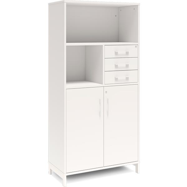 Kontorskab DNA, 800x1660 mm, Hvid/Hvid, skuffemodul 4A4/2A4