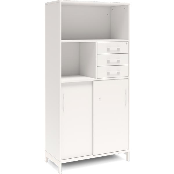 Kontorskab DNA, 800x1660 mm, Hvid/Hvid, skydedør og skuffemodul 4A4/2A4