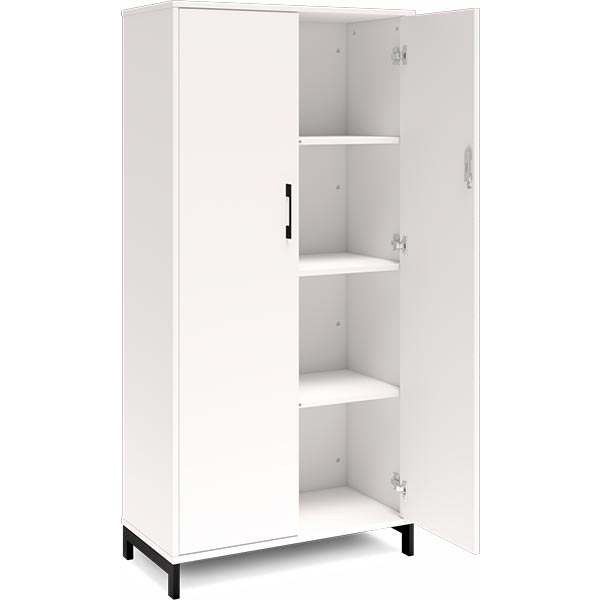 4A4 kontorskab i kontormøbelserien DNA, med 4A4 dør, udvendig bredde x dybde x højde, 800 x 400 x 1660 mm, inkl. understel. Dette kontorskab leveres med hvidt laminat kabinet i kombination med hvide laminat døre og på et flot sort understel, miljørigtig pulverlakeret.Specifikationer: