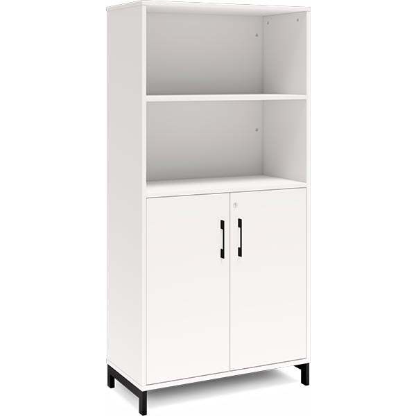 4A4 kontorskab i kontormøbelserien DNA, med 2A4 dør, udvendig bredde x dybde x højde, 800 x 400 x 1660 mm, inkl. understel. Dette kontorskab leveres med hvidt laminat kabinet i kombination med hvide laminat døre og på et flot sort understel, miljørigtig pulverlakeret.Specifikationer: