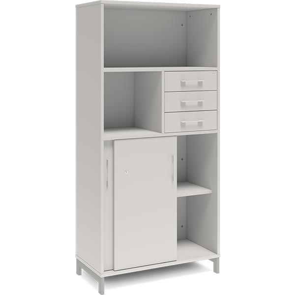 Kontorskab DNA, 800x1660 mm, Lys grå/Alugrå, skydedør og skuffemodul 4A4/2A4