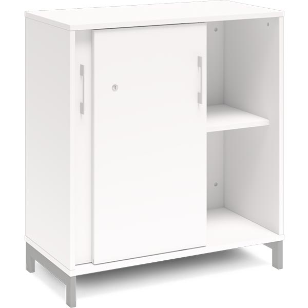 2A4 kontorskab i kontormøbelserien DNA, med 2A4 skydedør, udvendig bredde x dybde x højde, 800 x 400 x 890 mm, inkl. understel. Dette kontorskab leveres med hvidt laminat kabinet i kombination med hvide laminat døre og på et flot alugråt understel, miljørigtig pulverlakeret.Specifikationer: