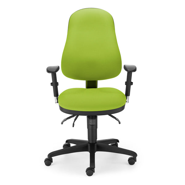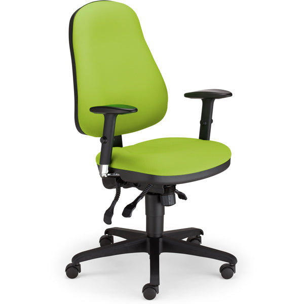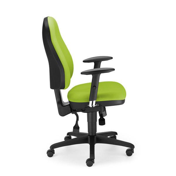 Kontorstol Offix i limegrøn udførelse. Justerbare armlæn leveres som tilvalg.