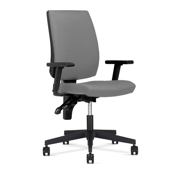 Kontorstolen Taktik er en moderne stol med dynamisk rygstøtte, bredt komfortabelt sæde og ryg - og ekstra polstring i forhold til stole i samme prisklasse. Taktik er en arbejdsstol med justerbar højde i ryggen, justerbare armlæn, hjul for bløde gulve og mekanisme med justerbar modstand i gyngen.Taktik leveres med solid, sort understel og er produceret i lysegrå Lucia tekstil, et slidstærkt tekstil i 100 procent polyester, med følgende klassificeringer:
