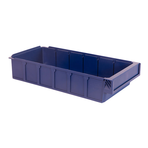 Velegnet til organiseret opbevaring og pluk af smådele i reoler, værksted og lager. Den lave højde på 80 mm giver hurtigt overblik over indholdet, mens formatet 400x188 mm udnytter hyldepladsen effektivt. Den blå farve kan bruges til enkel farvekodning af varegrupper.