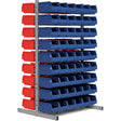 Lagerreolen leveres med 108 plastkasser, hver med målene 250x148x130 mm.