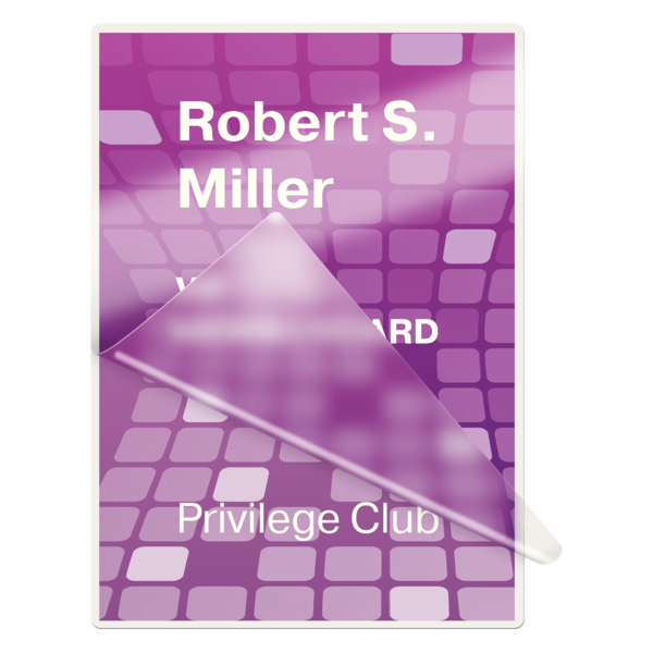 Lille lamineringslomme. Velegnet til medlemskort, kuffertmærker og meget andet.