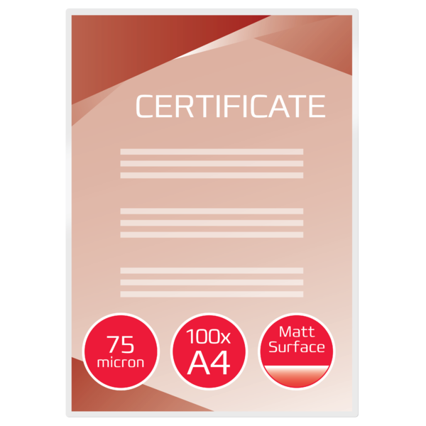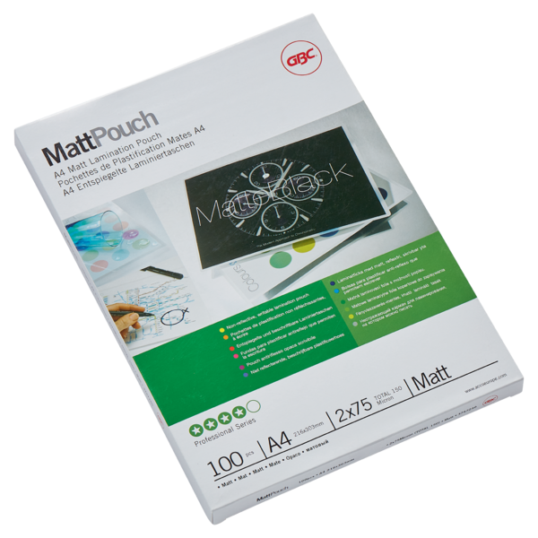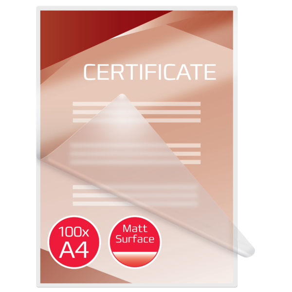 Beskytter dokumenter, der bruges ofte, med et hårdført, mat laminat, der klæber på begge sider af papiret. Minimerer reflekser og muligt at skrive på laminatet. 75 micron mat. A4 format. Pakkestørrelse: 100.