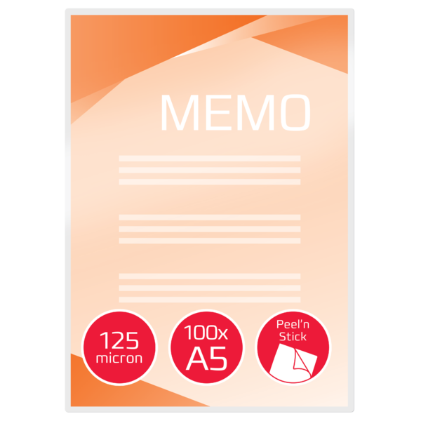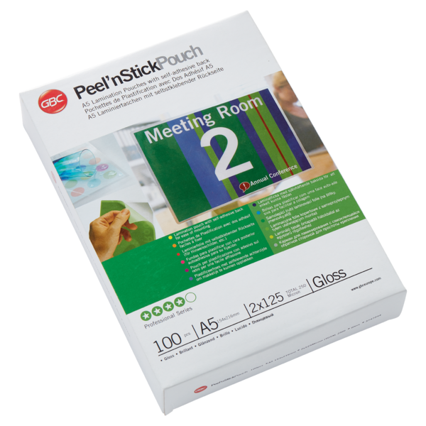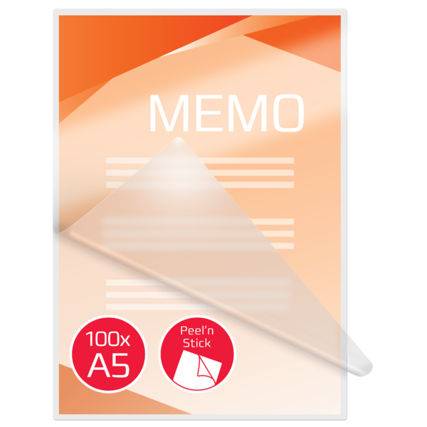 Peel'n Stick lamineringslommer er ideelle til hurtigt at oprette iøjnefaldende skilte i en professionel standard. Den klæbende bagside kan sidde fast på de fleste materialer, herunder glas, metal og karton. Tag blot papiret på bagsiden af for at få adgang til det selvklæbende lag. 125 micron skinnende lomme. A5 format. Pakkestørrelse: 100.
