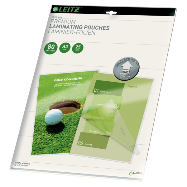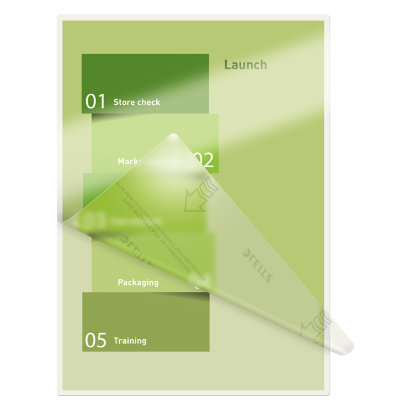 Oplev problemfri laminering med vores Lamineringslomme, der tilbyder ultimativ beskyttelse for dine dokumenter. Takket være Unique Direction Technology er det nemt at laminere; pile viser indføringsretningen og forsvinder efter brug.