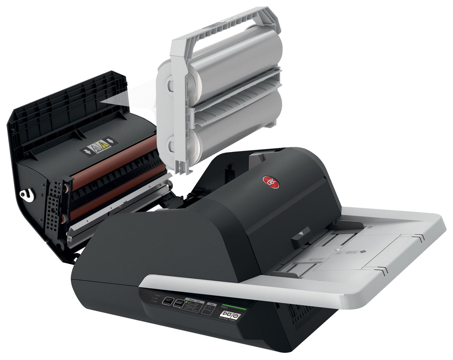 Spar 98% af den tid, du bruger på at laminere, med verdens første fuldautomatiske lamineringsmaskine til kontoret. Det eneste, du skal gøre, er at lægge dine dokumenter i auto feed bakken, trykke på startknappen, og maskinen laminerer så automatisk dine dokumenter. Læg i, tryk start, færdig! Nem-at-skifte kassetteteknologi for perfekt laminerede dokumenter igen og igen. Ideel til kontorer, som laminerer regelmæssigt. Laminerer automatisk op til 30 A4 eller A3 dokumenter på en gang. Nemt-at-isætte filmkassetter kan laminere op til 250 A4 dokumenter - tilgængelig i 75, 100 & 125 Micron. Automatisk auto feed papirjustering for perfekt laminering af dokumenter hver gang. Manuel lamineringstilstand for tykt papir eller ikke-standard formede dokumenter, op til 250g. Leveres med 75 micron starter kassette (15,2 m cirka 60 lamineringer). Intuitivt kontrolpanel giver mulighed for let skifte mellem automatiske og manuelle lamineringsindstillinger. Lav-film indikatorlys fortæller dig, hvornår en