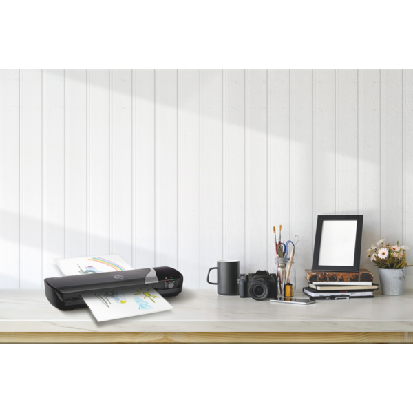 GBC Inspire+ A3-lamineringsmaskinen er let og kompakt og perfekt til hjemmebrugere eller hjemmekontorer, der har brug for fleksibilitet til at producere emner fra ID op til A3-størrelse. Denne lamineringsmaskine er nem at betjene via en enkelt kontakt og har en hurtig opvarmningstid på 4 minutter. Du kan laminere op til 125 micron lamineringslommer for at give dine dokumenter en professionel finish. Inspire+ GBC-lamineringsmaskinen har også en kold lamineringsfunktion til dine varmefølsomme materialer. Denne lamineringsmaskine med lommer giver dig mulighed for at være kreativ på et øjeblik - fantasien er alt, hvad du behøver! Startpakke med 5x A4 lamineringslommer inkluderet (75 micron). Sort farve.