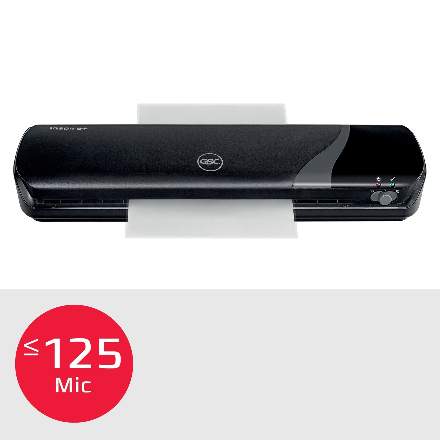 GBC Inspire+ A3-lamineringsmaskinen er let og kompakt og perfekt til hjemmebrugere eller hjemmekontorer, der har brug for fleksibilitet til at producere emner fra ID op til A3-størrelse. Denne lamineringsmaskine er nem at betjene via en enkelt kontakt og har en hurtig opvarmningstid på 4 minutter. Du kan laminere op til 125 micron lamineringslommer for at give dine dokumenter en professionel finish. Inspire+ GBC-lamineringsmaskinen har også en kold lamineringsfunktion til dine varmefølsomme materialer. Denne lamineringsmaskine med lommer giver dig mulighed for at være kreativ på et øjeblik - fantasien er alt, hvad du behøver! Startpakke med 5x A4 lamineringslommer inkluderet (75 micron). Sort farve. - Laminerer fra ID-kort til A3-størrelse - Klar til brug på 4 minutter - Bruger lamineringslommer fra 75 micron op til 125 micron. - Nem laminering i ét trin ved hjælp af en simpel kontakt. - Kold indstilling til brug med selvklæbende koldlamineringslommer for at beskytte varmeføl